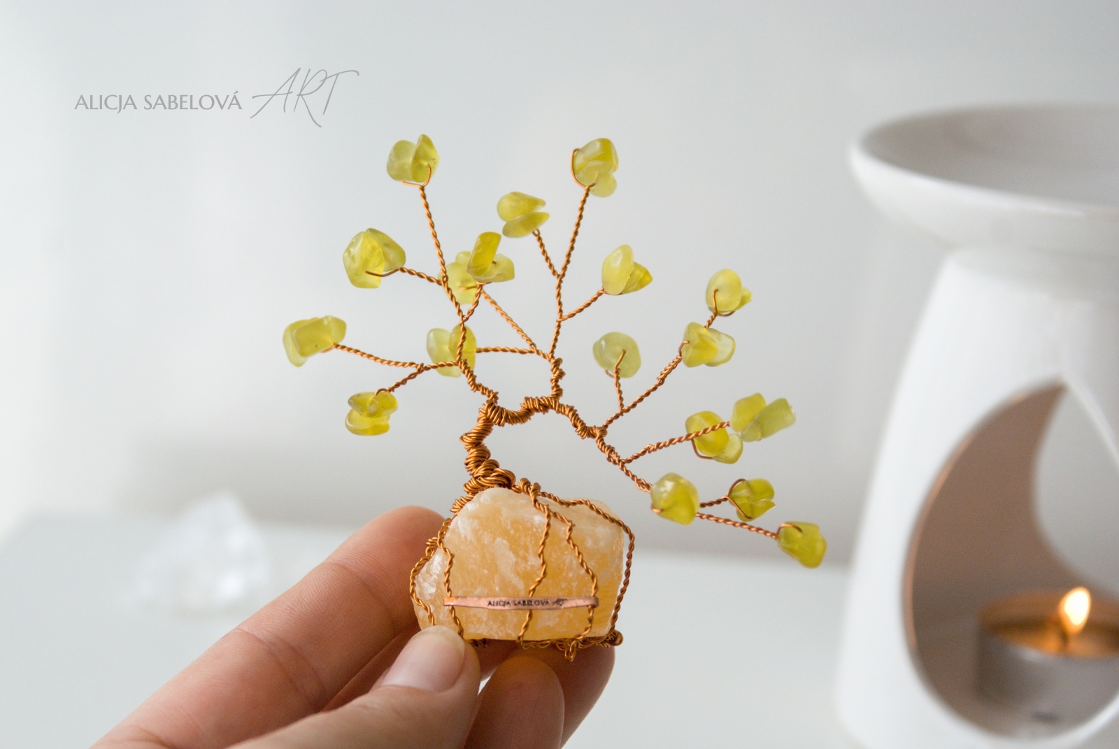 Malý osobní stromeček je úžasně kontaktní. Můžete si ho vzít kdykoliv do ruky, vnímat jeho krásu, energii, detaily… být tu chvíli s ním a zároveň sami se sebou. Je nenápadný a na prostor nenáročný. Můžete ho tak jednoduše přemisťovat například na noční stolek osobní oltář nebo pracovní stůl.