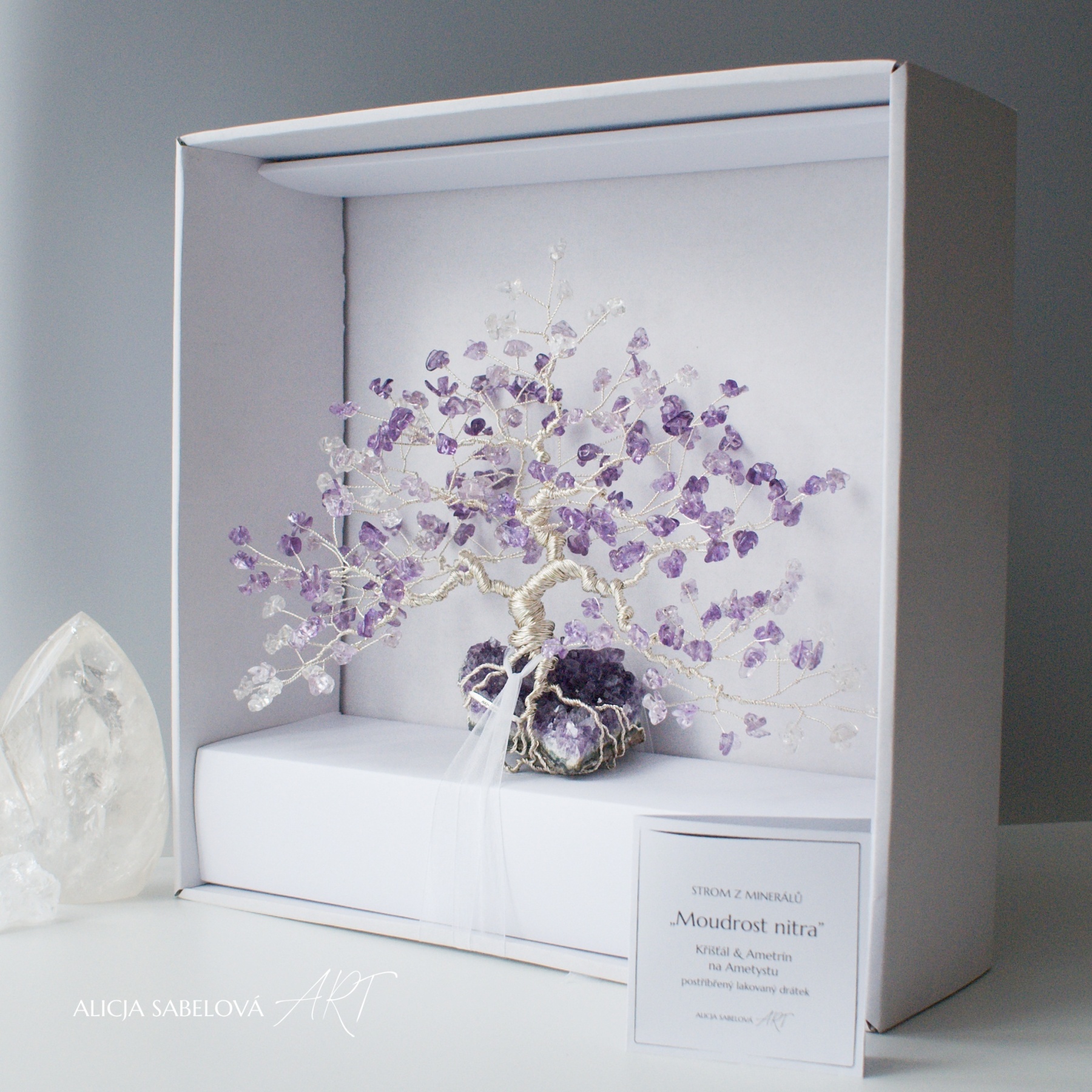 Tento strom života vám dodám v dárkové papírové krabičce s popiskem kamenů a informací, jak o výrobek pečovat.